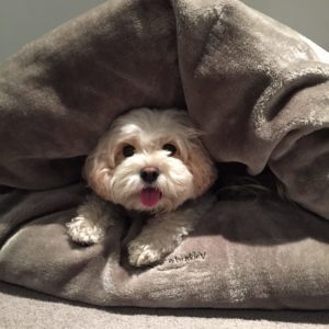Try creating a hidey-hole for your furbaby. If you have a quiet room with no windows (even just a bathroom), try putting his dog or cat bed and his favourite blanket and toys in there before the fireworks start. That way he’ll have somewhere relatively quiet he can retreat. Some pets even like the security of hiding in the bathtub! Experiment to see what makes your pet happiest.